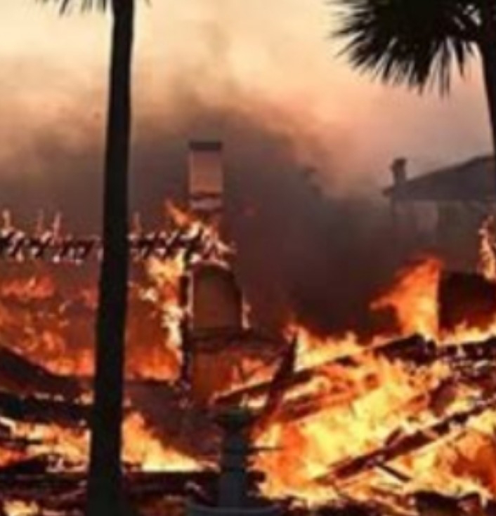 Anthony Hopkins: Rumah aktor legendaris ini hanya menyisakan beberapa pilar beton dan kayu yang telah hangus. Asap masih mengepul dari puing-puing rumahnya.